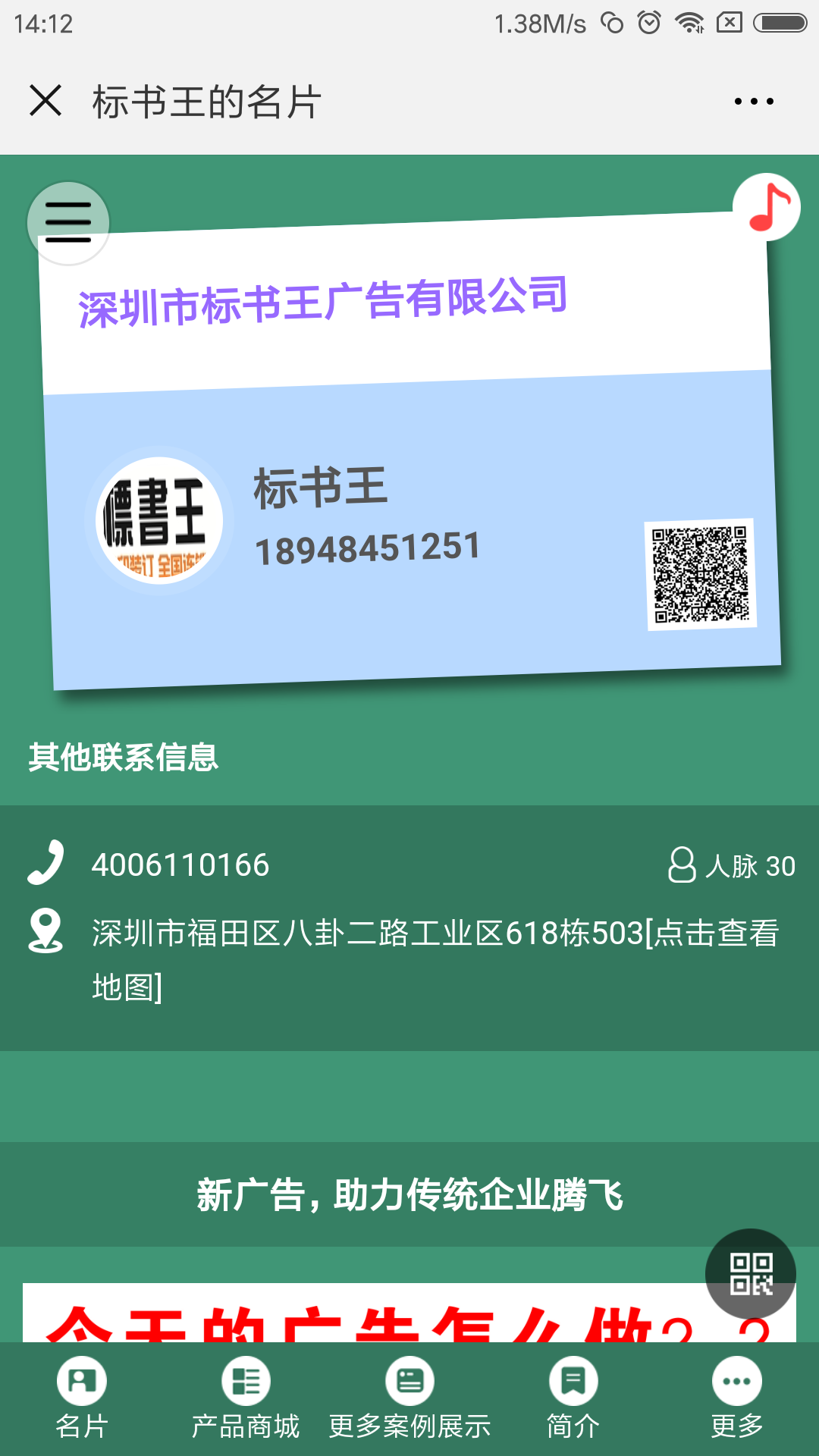 公司新聞動態、個人簡介,讓客戶通過名片充分了解公司文化、銷售的專業履歷。